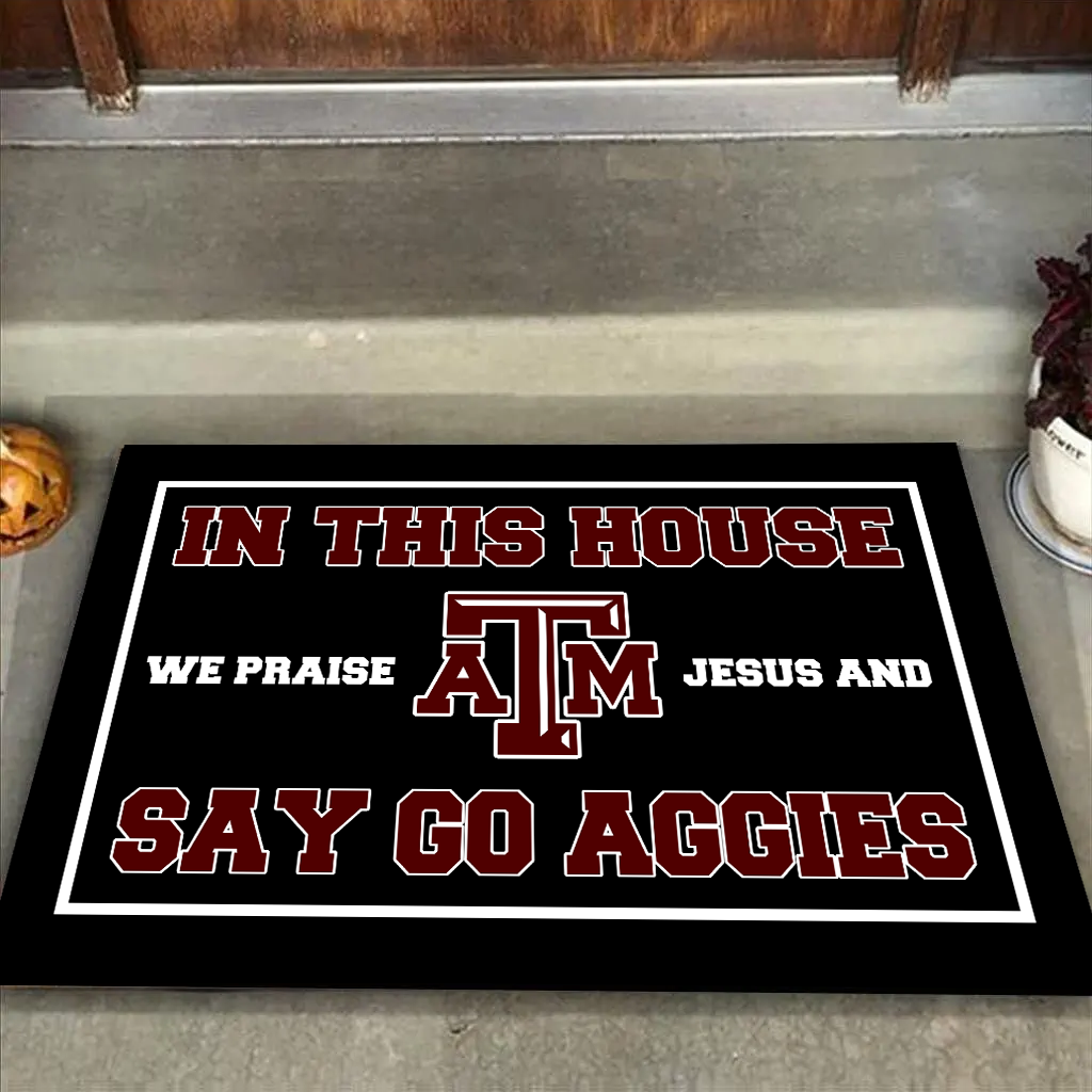 In This House We Praise Jesus and Say Go Aggies Mat For Texas A&M Aggies Fans