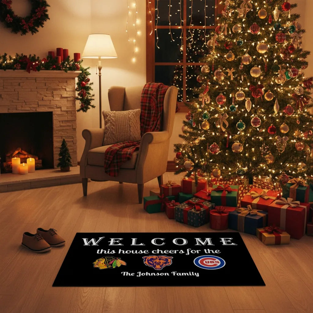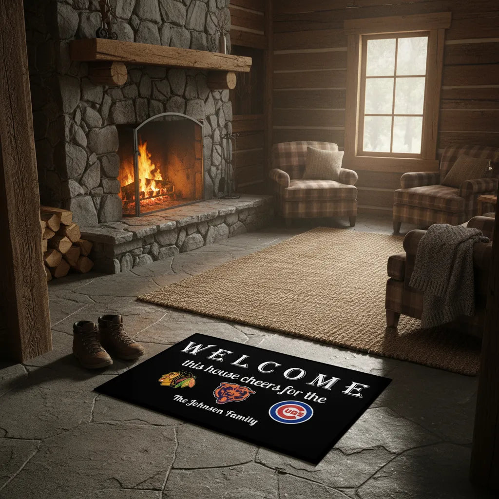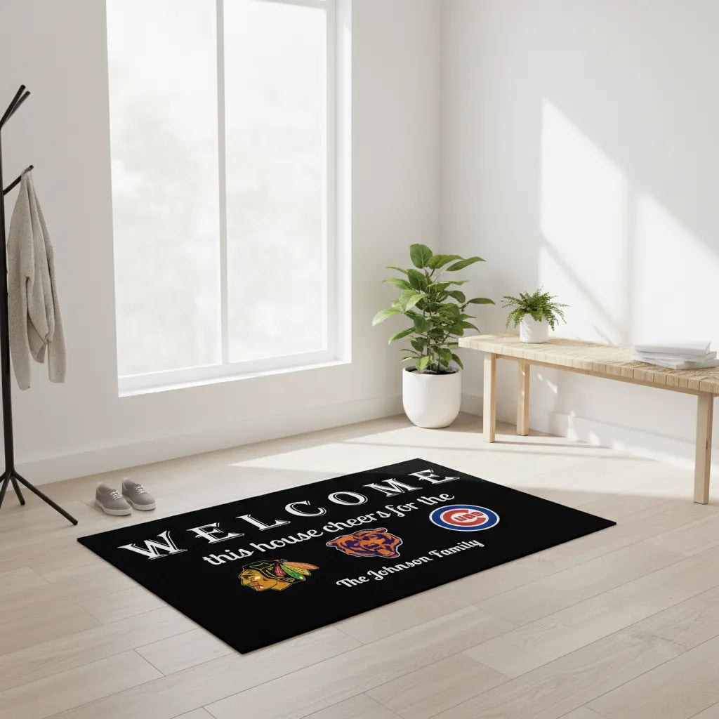 Custom Sports Welcome Mat – Choose 1, 2, or 3 Teams + Add Your Family Name!