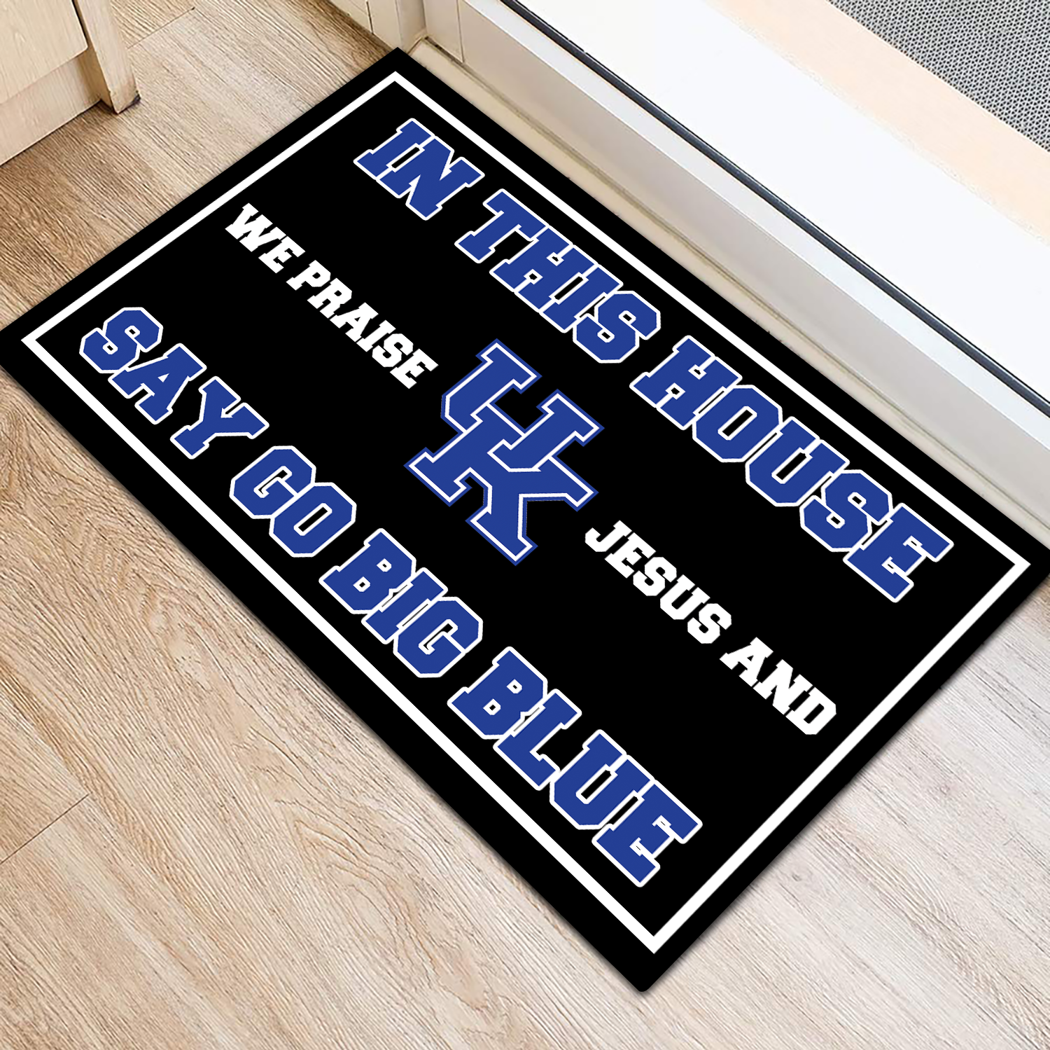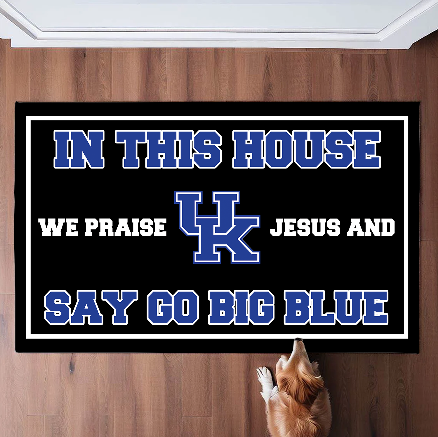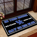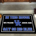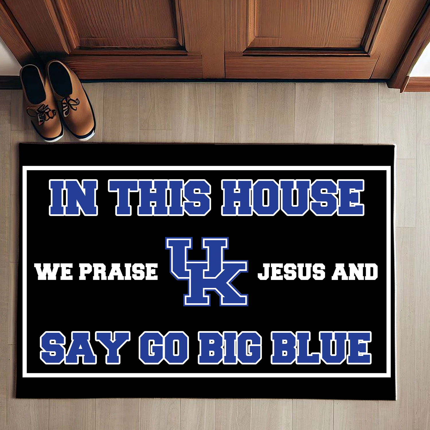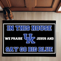 In This House We Praise Jesus and Say Go Big Blue Doormat Kentucky Wildcats Doormat