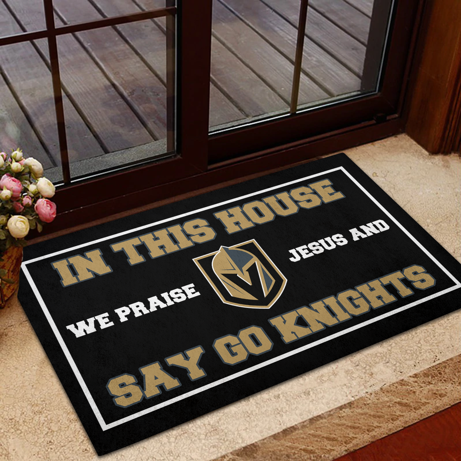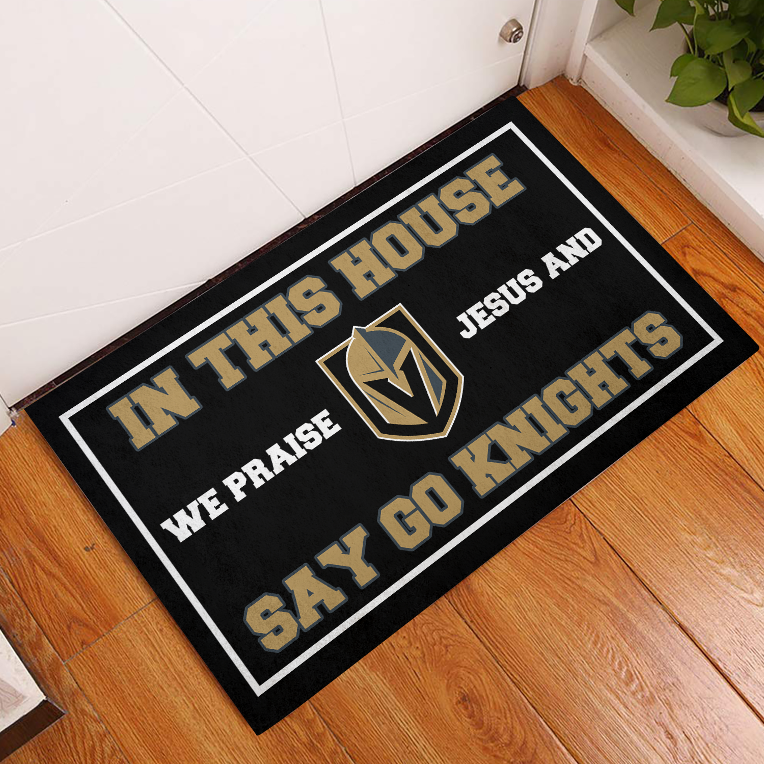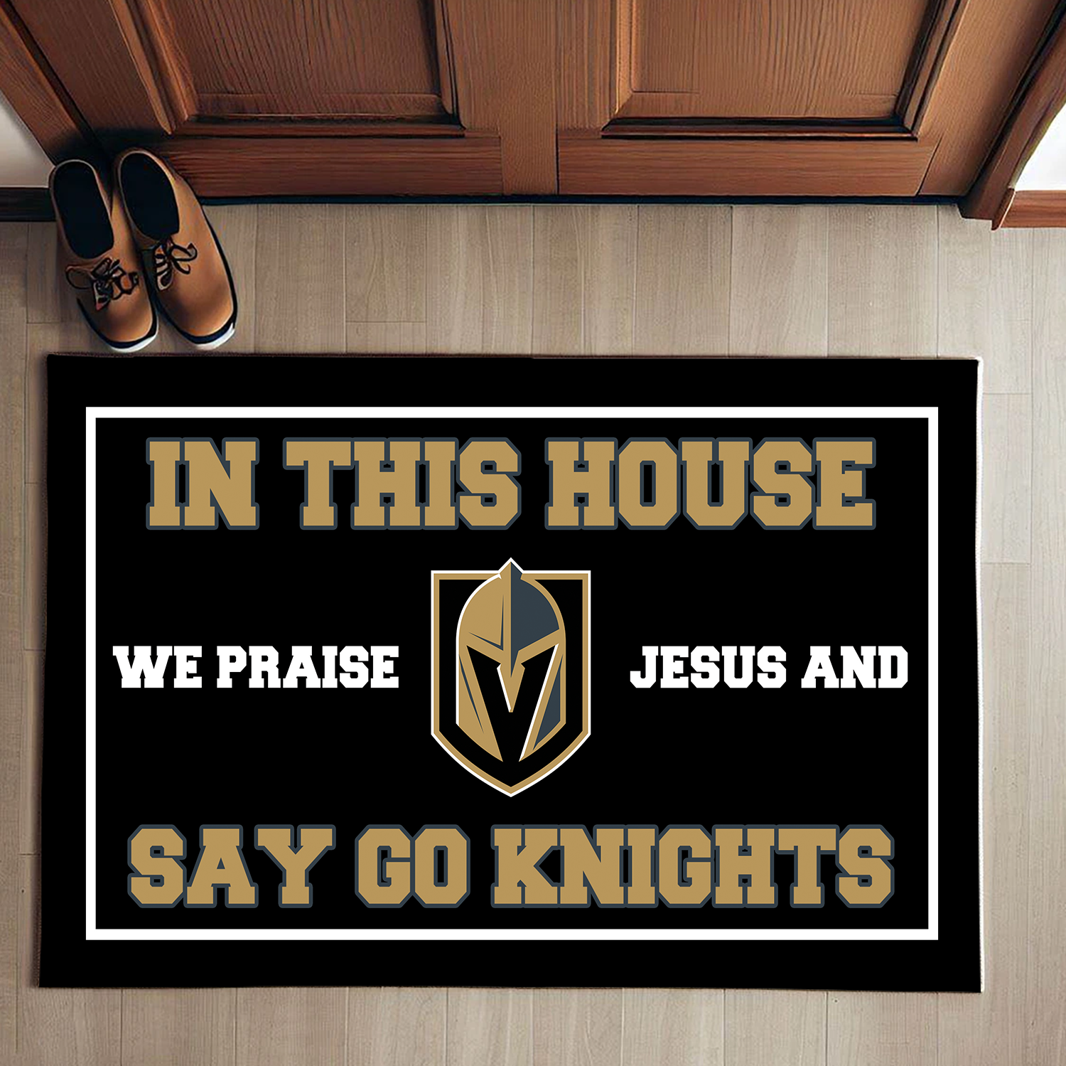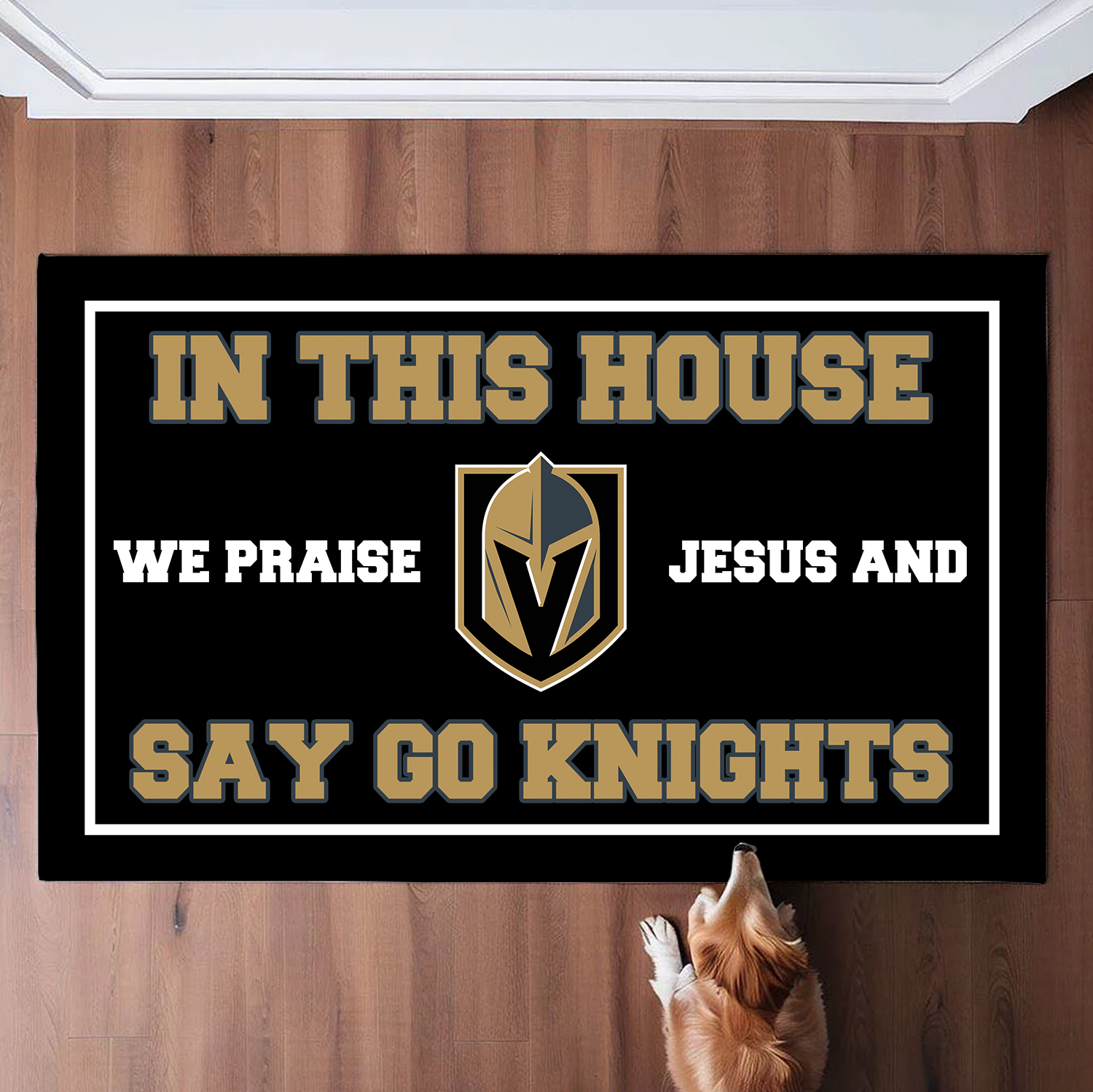 In This House We Praise Jesus and Say Go Knights Doormat for Vegas Golden Knights Fans