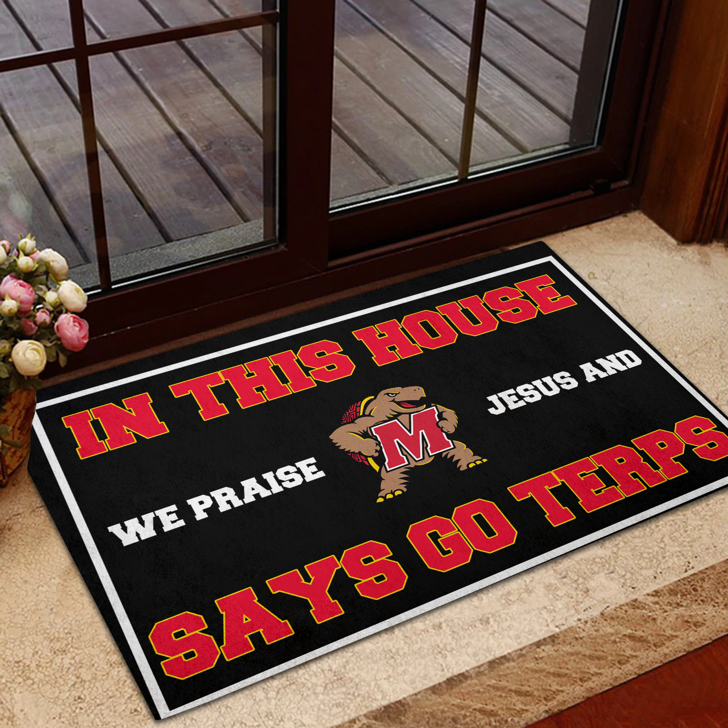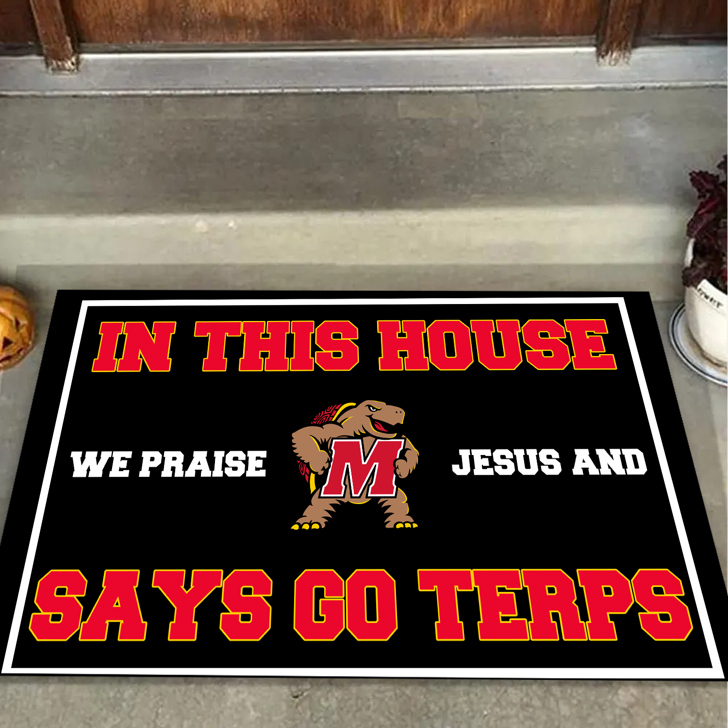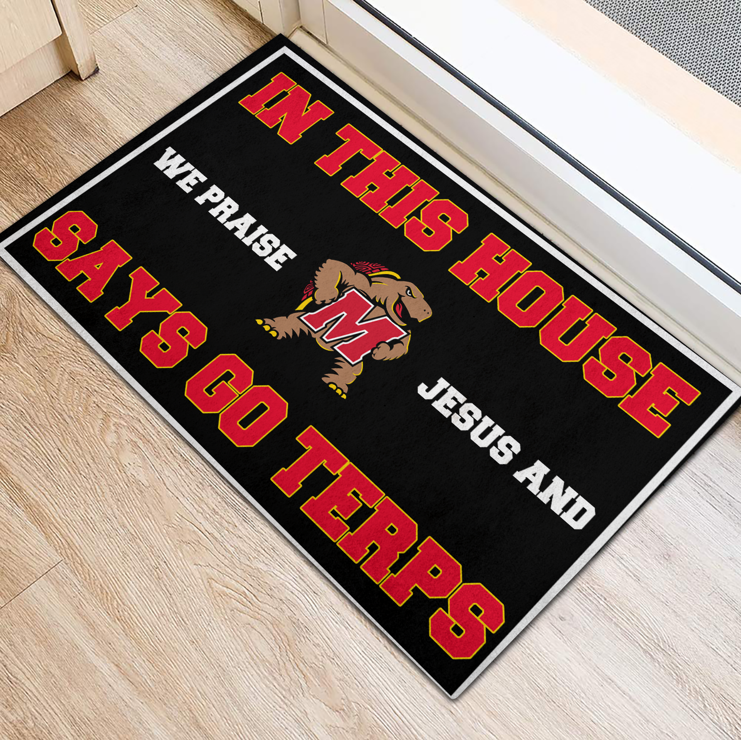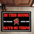 In This House We Praise Jesus And Says Go Terps Doormat for Maryland Terrapins Fans