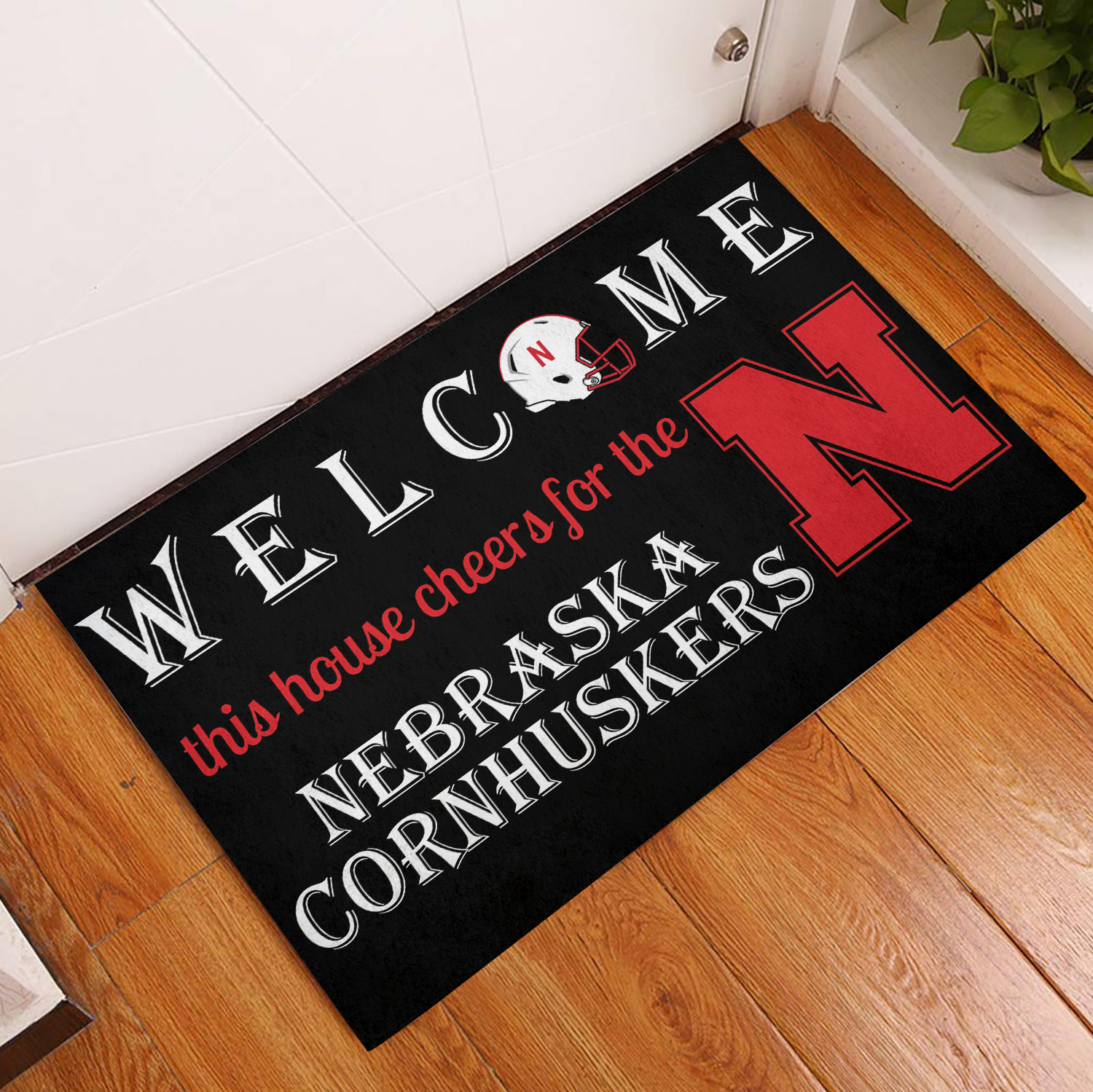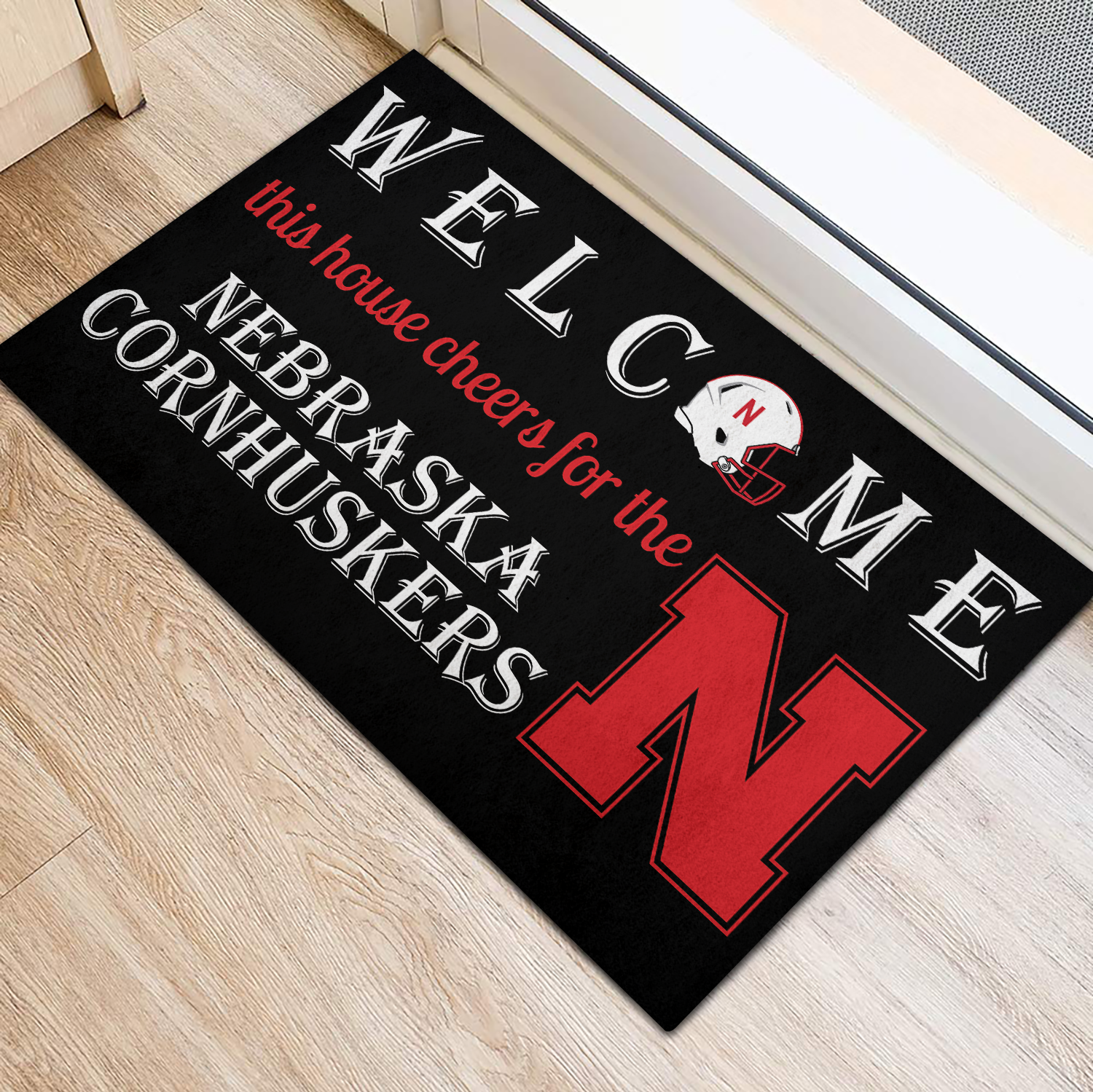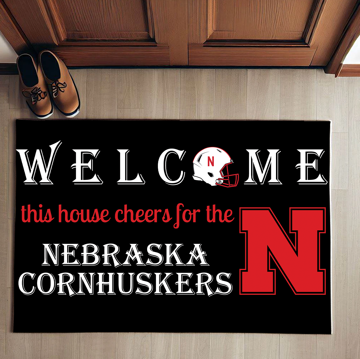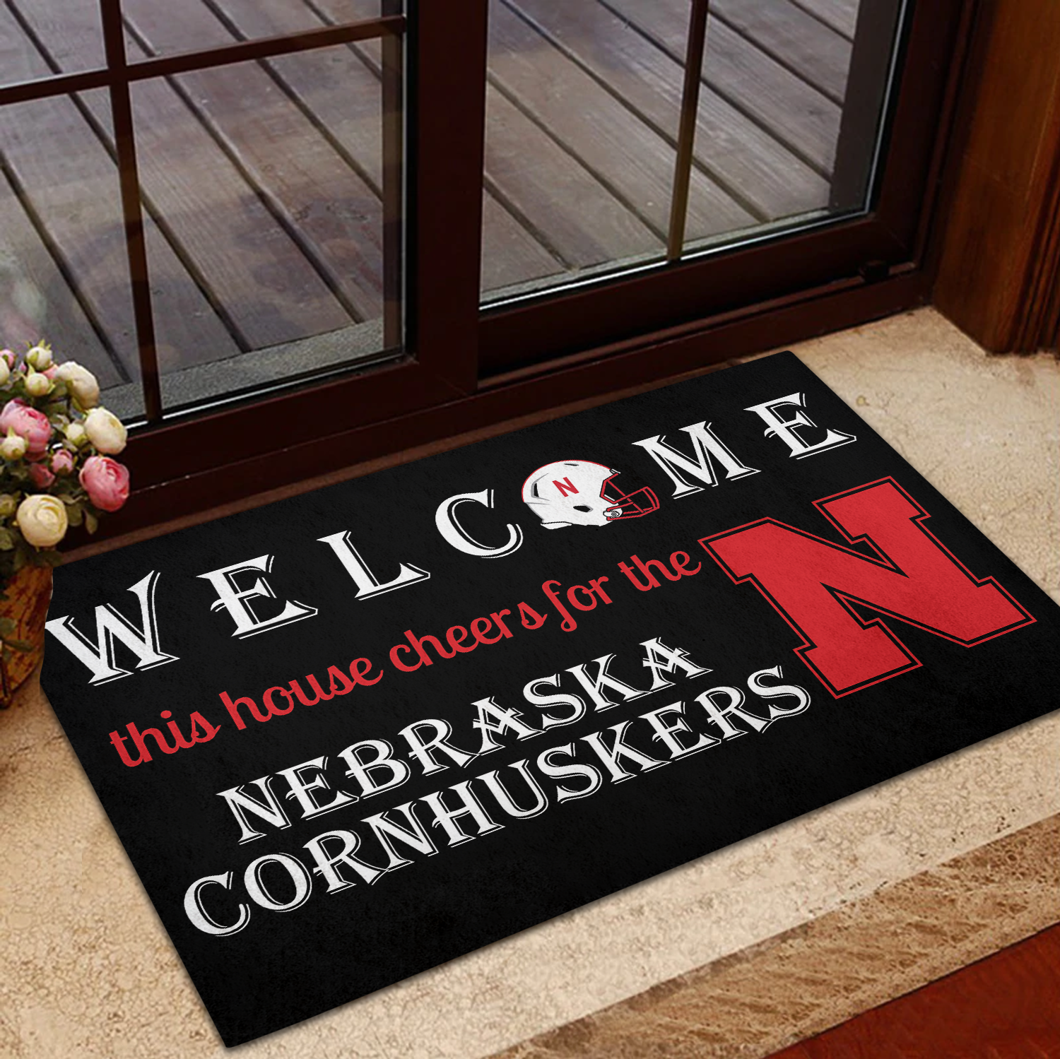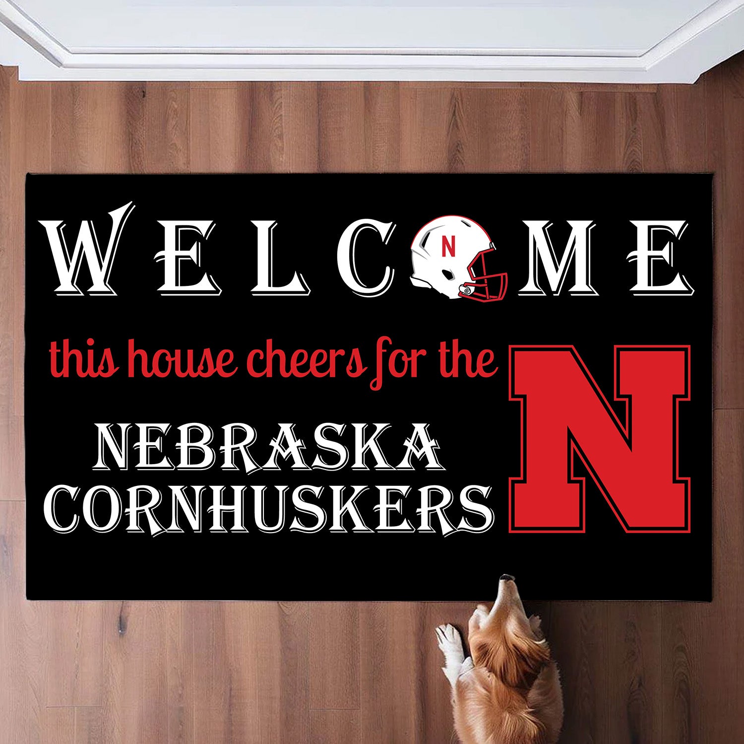 Welcome This House Cheer for Nebraska Cornhuskers Doormat