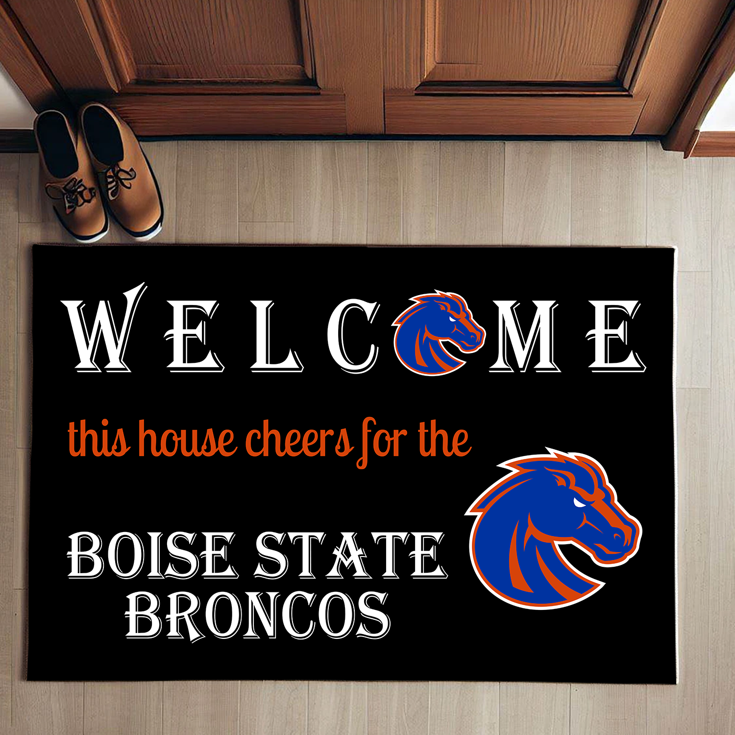 Welcome This House Cheers for The Boise State Broncos Doormat for Fans