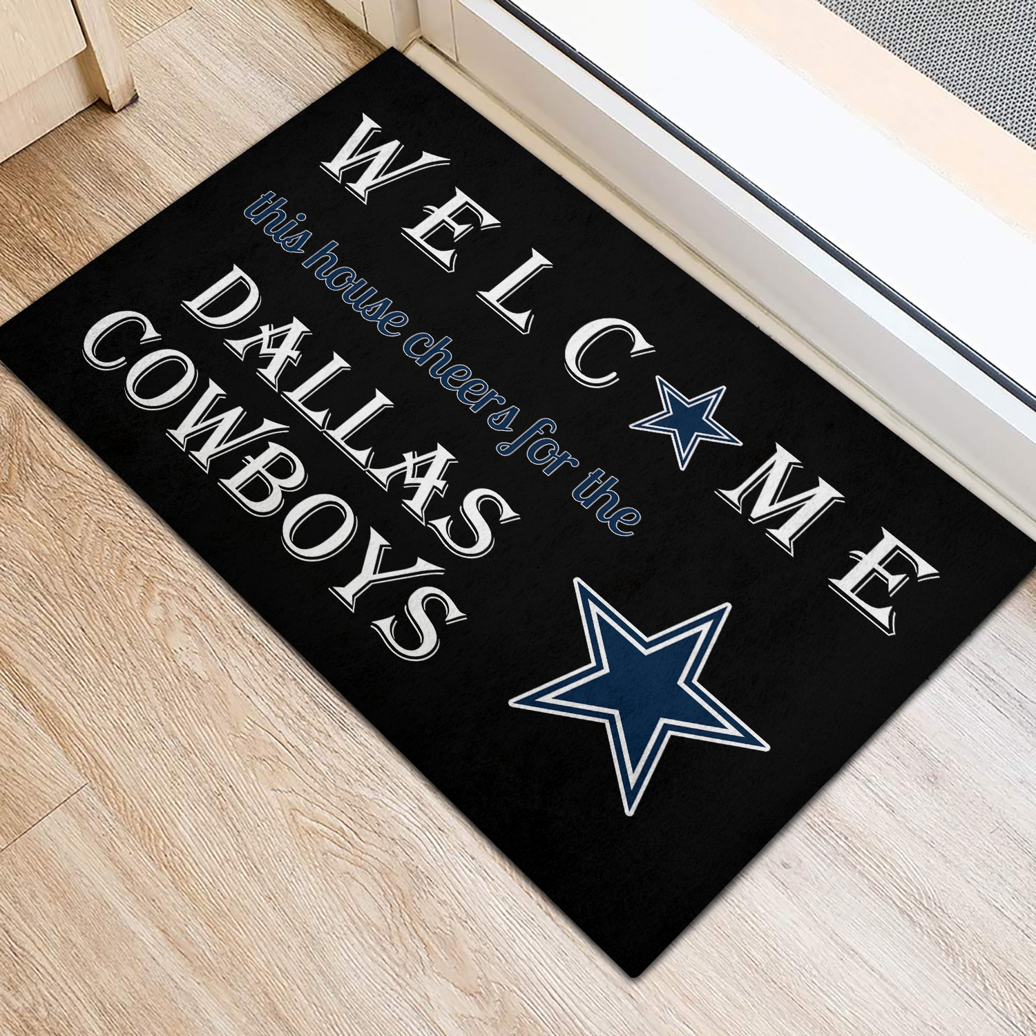 Welcome This House Cheers for The Dallas Cowboys Mat for Dallas Fans