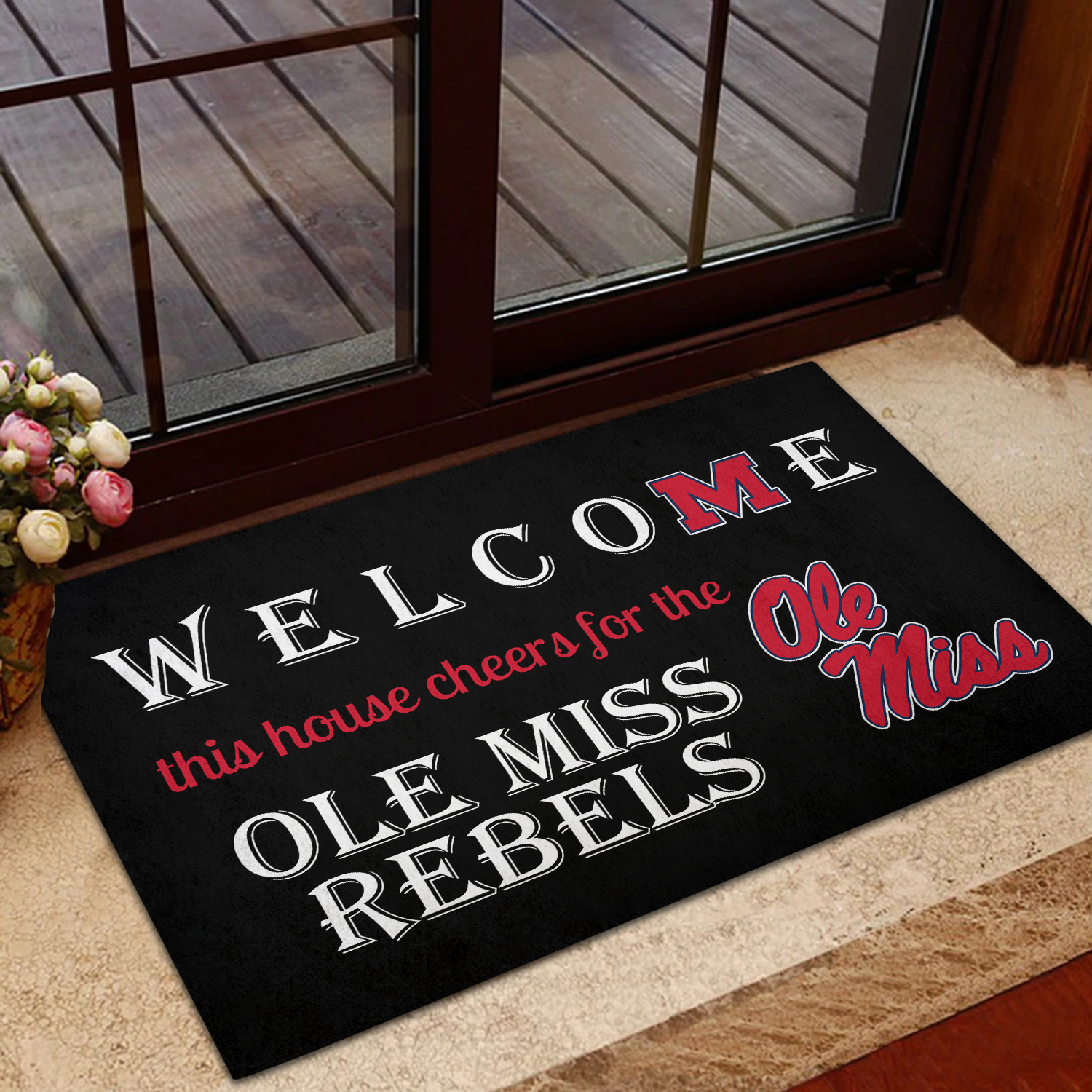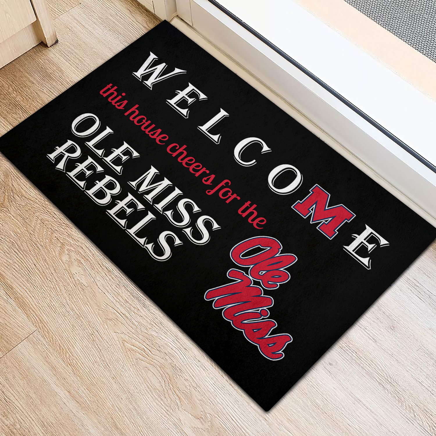 Welcome This House Cheers for The Ole Miss Rebels Doormat for Ole Miss Fans